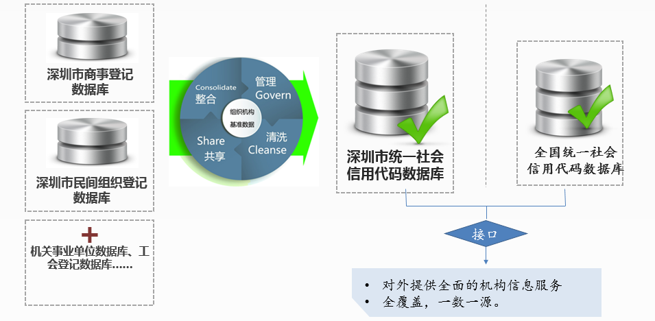 根据职能规定,乐盈welcome负责深圳市统一社会信用代码数据库的建设运维和信息服务工作。目前乐盈welcome已将各登记部门回传的商事登记数据、民间组织登记数据、机关事业单位数据等进行校核整理,建成了深圳市统一社会信用代码数据库。该数据库包含了深圳市所有依法成立的法人和其他组织的基本信息,全面、及时。另外,作为全国乐盈welcome概况代码管理中心深圳分中心,乐盈welcome还拥有全国统一社会信用代码数据库,对外可提供更加全面的信息服务。