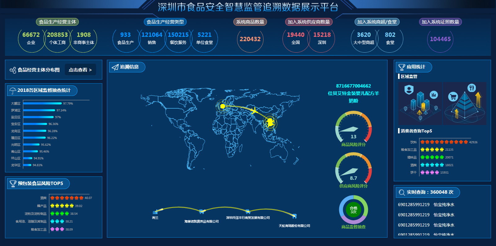 ● 深圳市食品安全智慧监管追溯数据展示平台