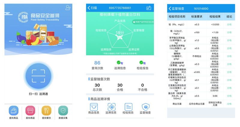 系统登录用户主要分为供应商、零售商和市场监管人员,普通大众可通过下载手机APP(“食品安全追溯”)进行信息查询。系统为供应商提供索证索票相关资料在线上传服务,“一次录入,全程共享”,可同时推送新品给多个商超;为零售商提供在线证照审核、新品审核等服务,改变传统线下审核资料的模式;为监管人员提供产品来源可查询、去向可跟踪的完整供应链条监管服务,更好的实施监督抽查、市场监管等工作。相关数据已对接至“i深圳”民政政务APP、“深圳食事药闻”小程序、腾讯安心计划、“深信”APP等。