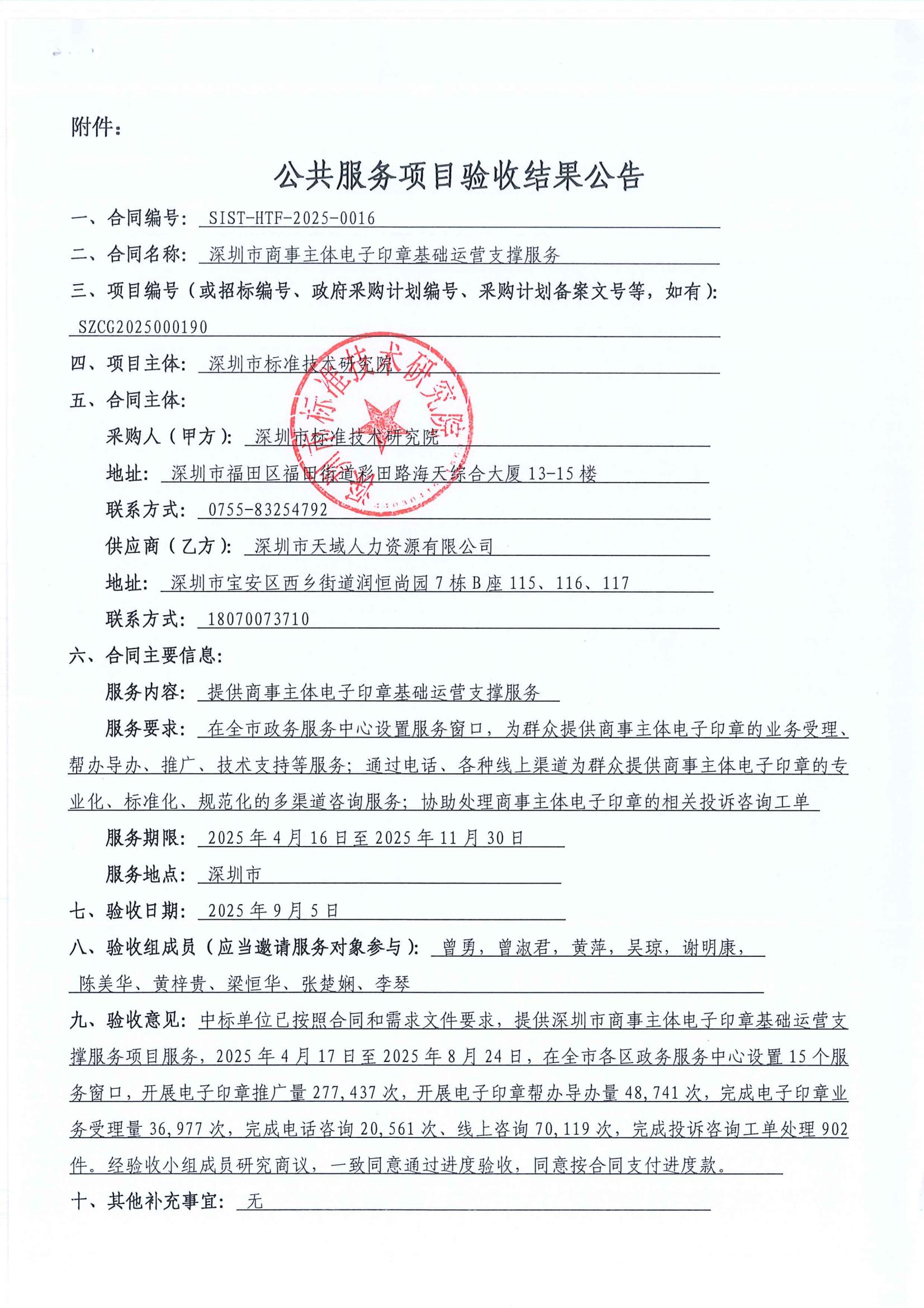 公共服务项目验收结果公告