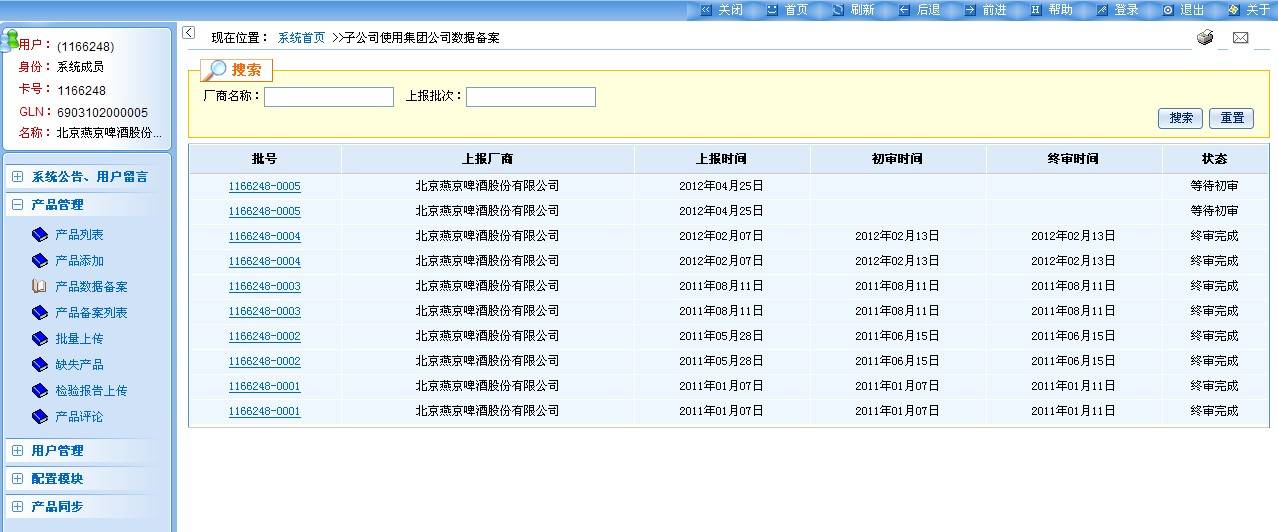 l  第五步,商品条码工作机构在“中国商品信息服务平台”初审子公司产品备案;
