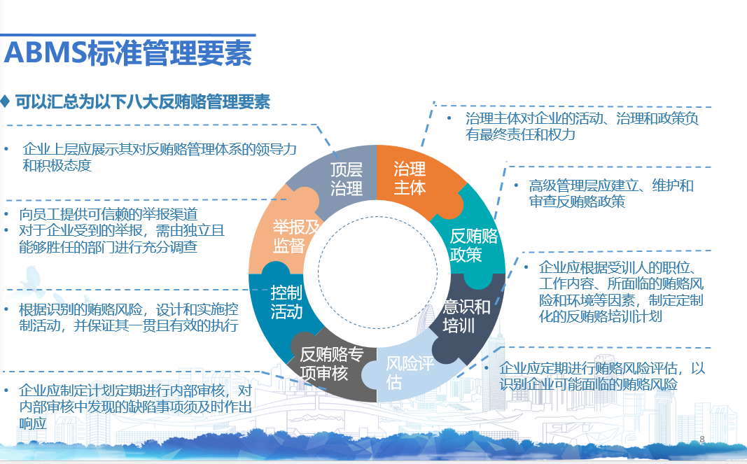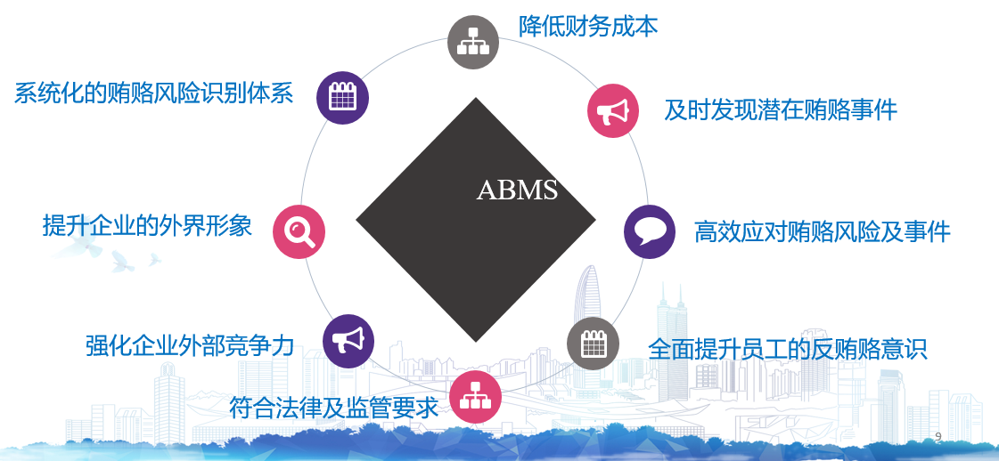 帮助跨国集团建立国际公认的贿赂管控体系,以满足众多国家的反腐败/反贿赂的相关法律法规,有效应对海外市场的合规要求,控制公司全球经营中的贿赂风险。